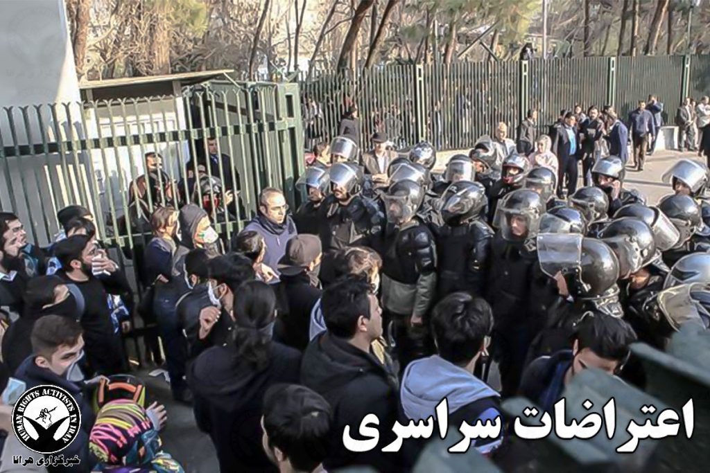 از تاریخ ۷ دیماه تاکنون مردم شهرهای زیادی در ایران در اعتراض به وضعیت بد اقتصادی تجمع کردند. ماموران امنیتی علیه معترضان از ماشین آبپاش و گاز اشکآور استفاده کردند.